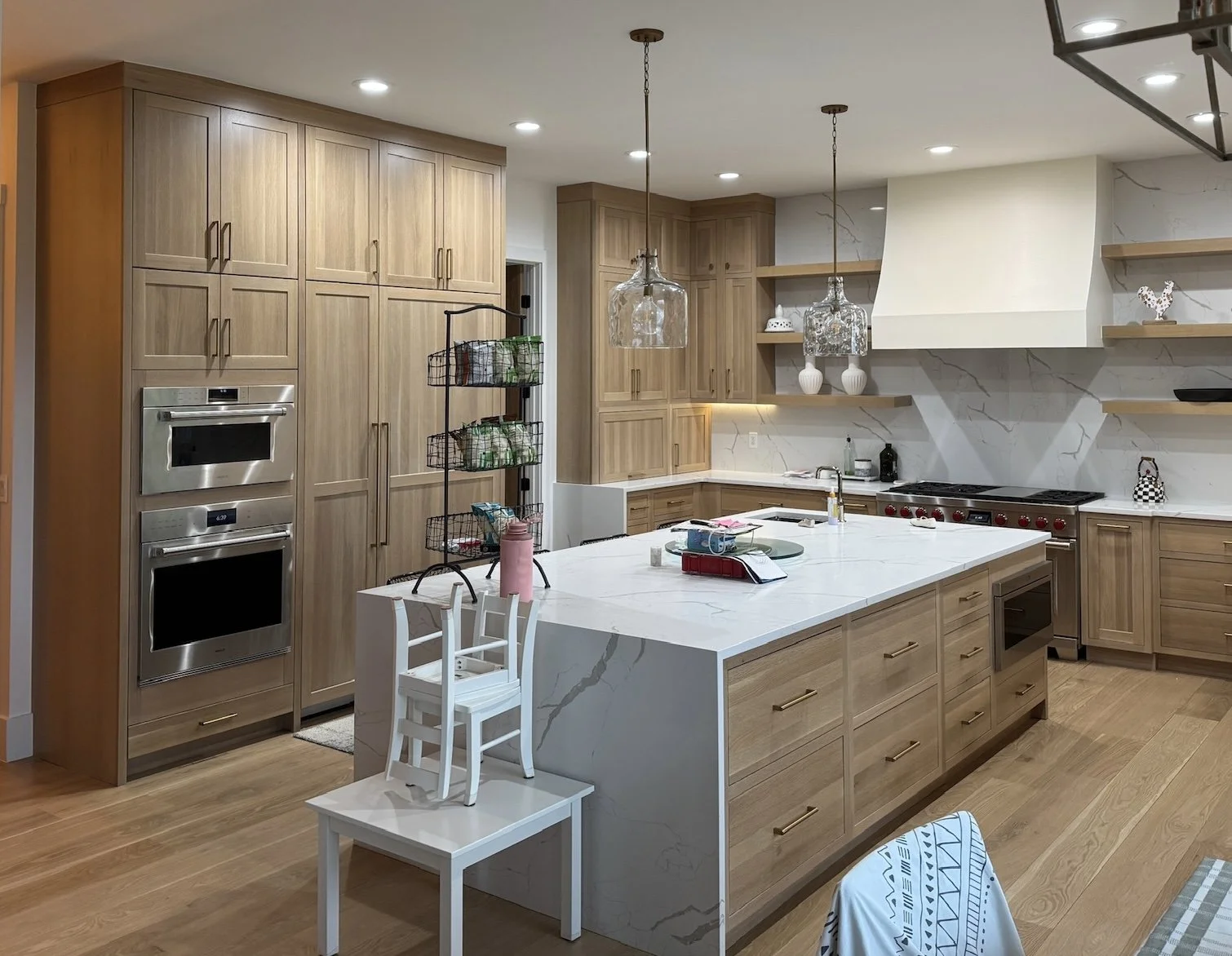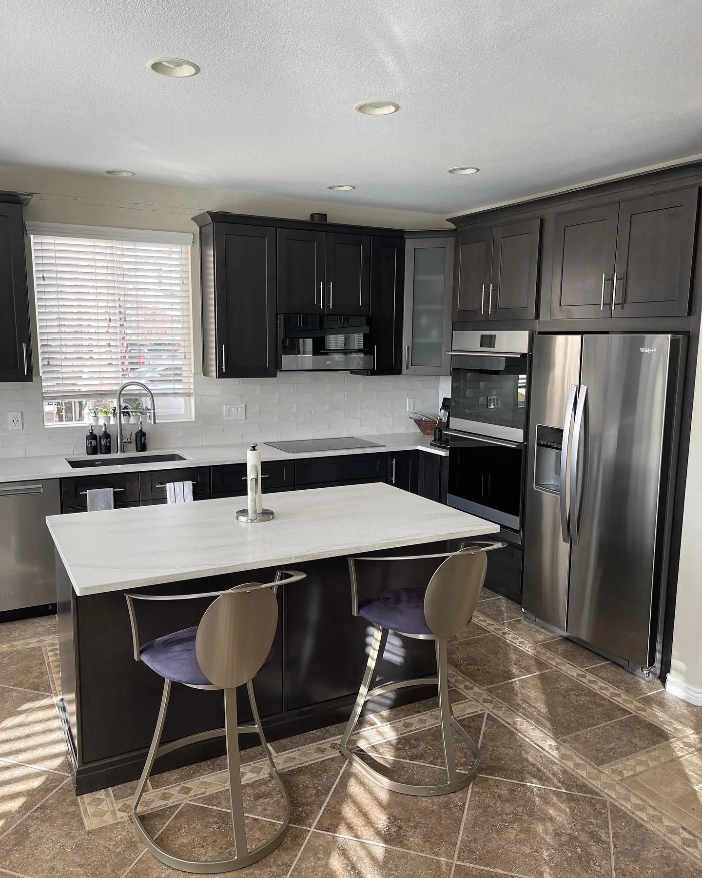Earthy yet modern kitchen upgrade in Highlands Ranch that makes maximum storage space look chic.